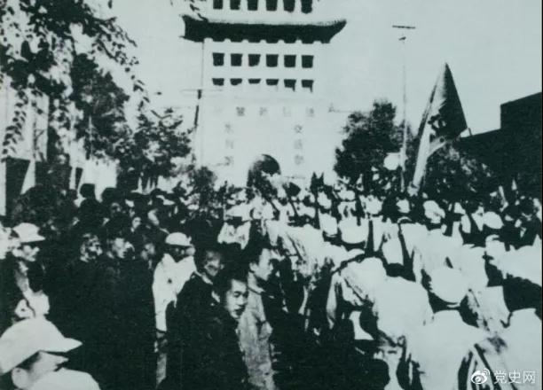 ▲1949年8月,蘭州解放。圖為第一野戰(zhàn)軍開(kāi)進(jìn)蘭州市區(qū)。